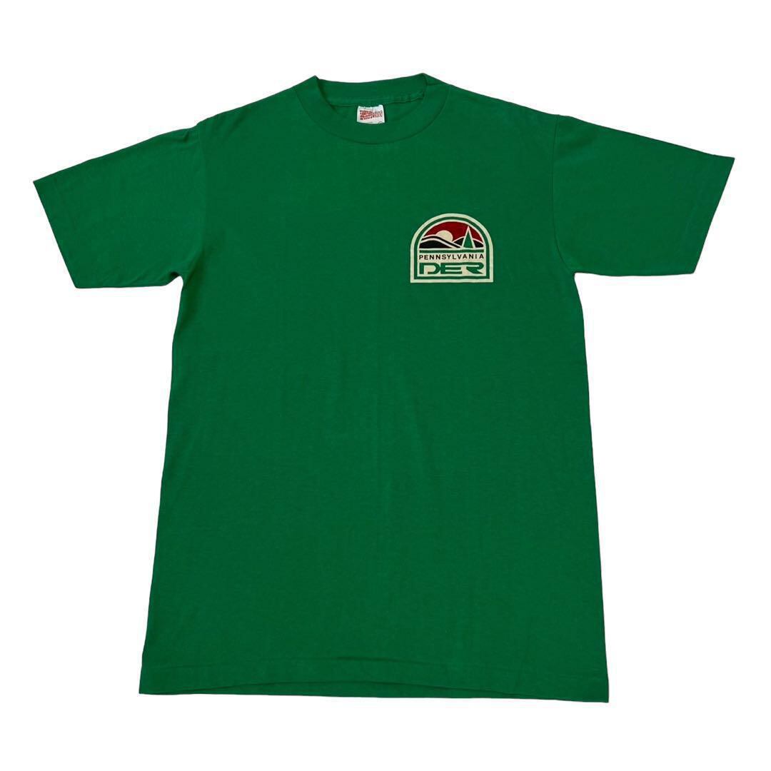 80s シングルステッチ ビンテージ プリントT シャツ スーベニアT ジャストサイズ ピタT 胸元 ワンポイント USA製 ペンシルベニア Pennsylvania 50% コットン 50% ポリ 緑 古着 【M】