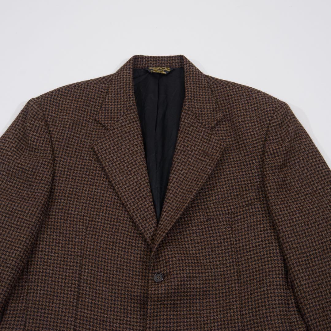 テーラード ジャケット USA製 3つボタン シングル アルパカ ウール 千鳥柄 ノーベント 茶 【L】