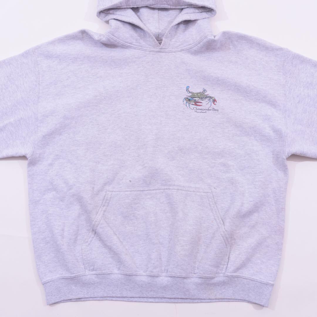 アニマル プリント パーカー フーディー プルオーバー 杢グレー カニ 動物 バックプリント 胸元 ワンポイントオーバーサイズ ボックスシルエット vintage 古着