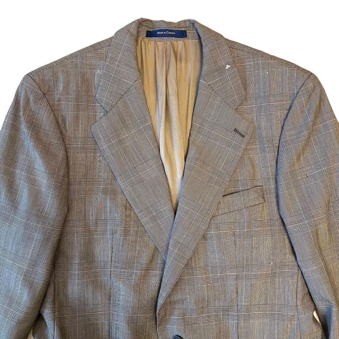 80s Chaps Ralph Lauren テーラードジャケット カナダ製 ウール グレンチェック センターベント 2つボタン 茶 vintage 古着 L