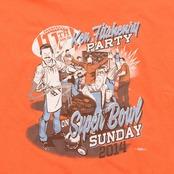 スーパーボールサンデー プリント スポーツ キャラクター ポケット Tシャツ USA製 Super Bowl Sunday 2014 オーバーサイズ ボックスシルエット オレンジ vintage 古着 XL