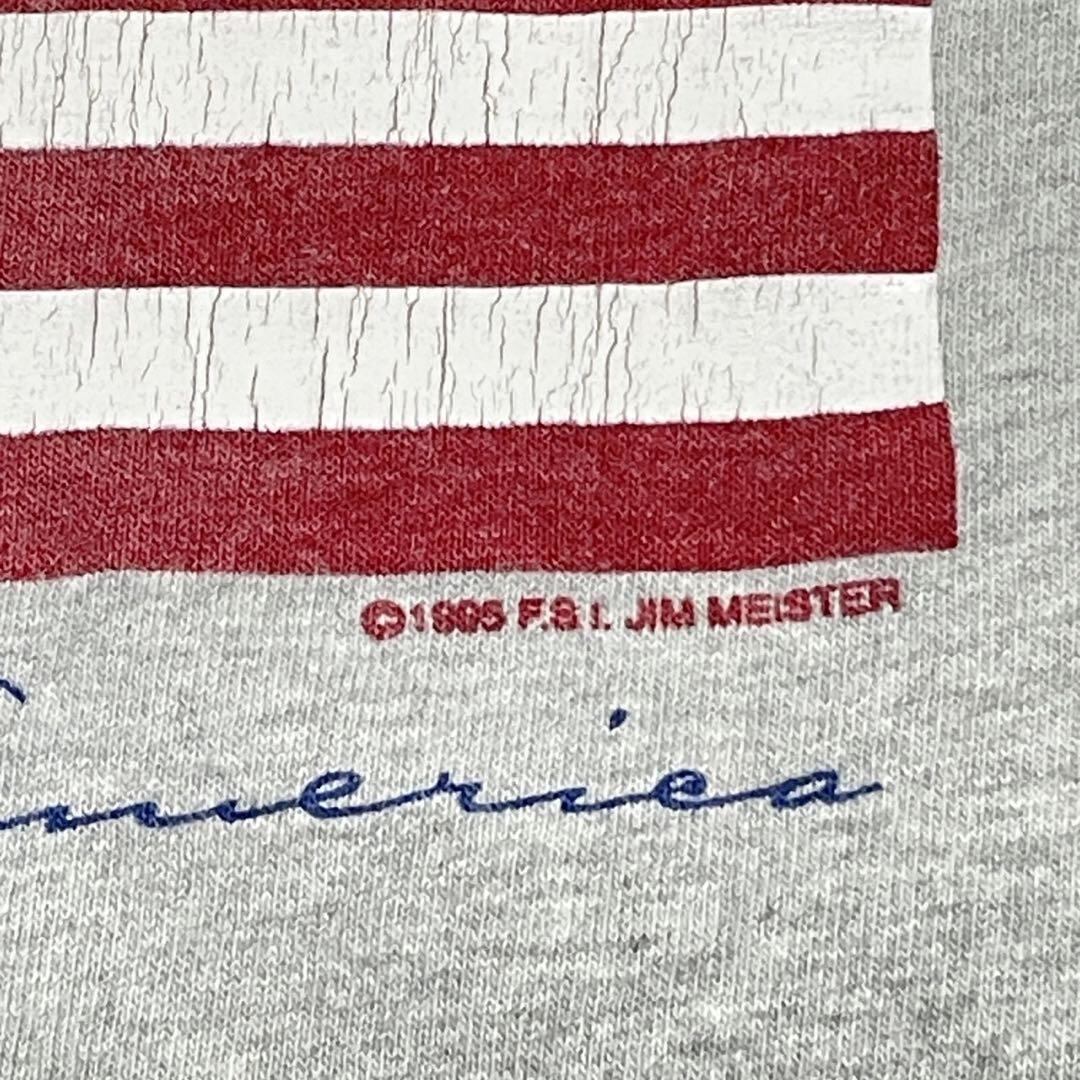 90s ONITA ビンテージ プリント Tシャツ シングルステッチ USA アメリカ国旗 星条旗 95年 90年代 オニータ 杢グレー vintage 古着 【M】