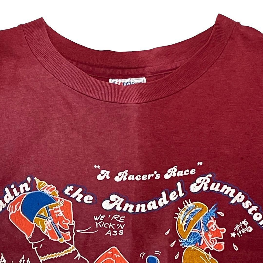 80s HANES ビンテージ プリント Tシャツ USA製 赤 フェード スポーツ イベントT 87年 ダメージ 80年代 ヘインズ 古着 vintage 古着 【XL】