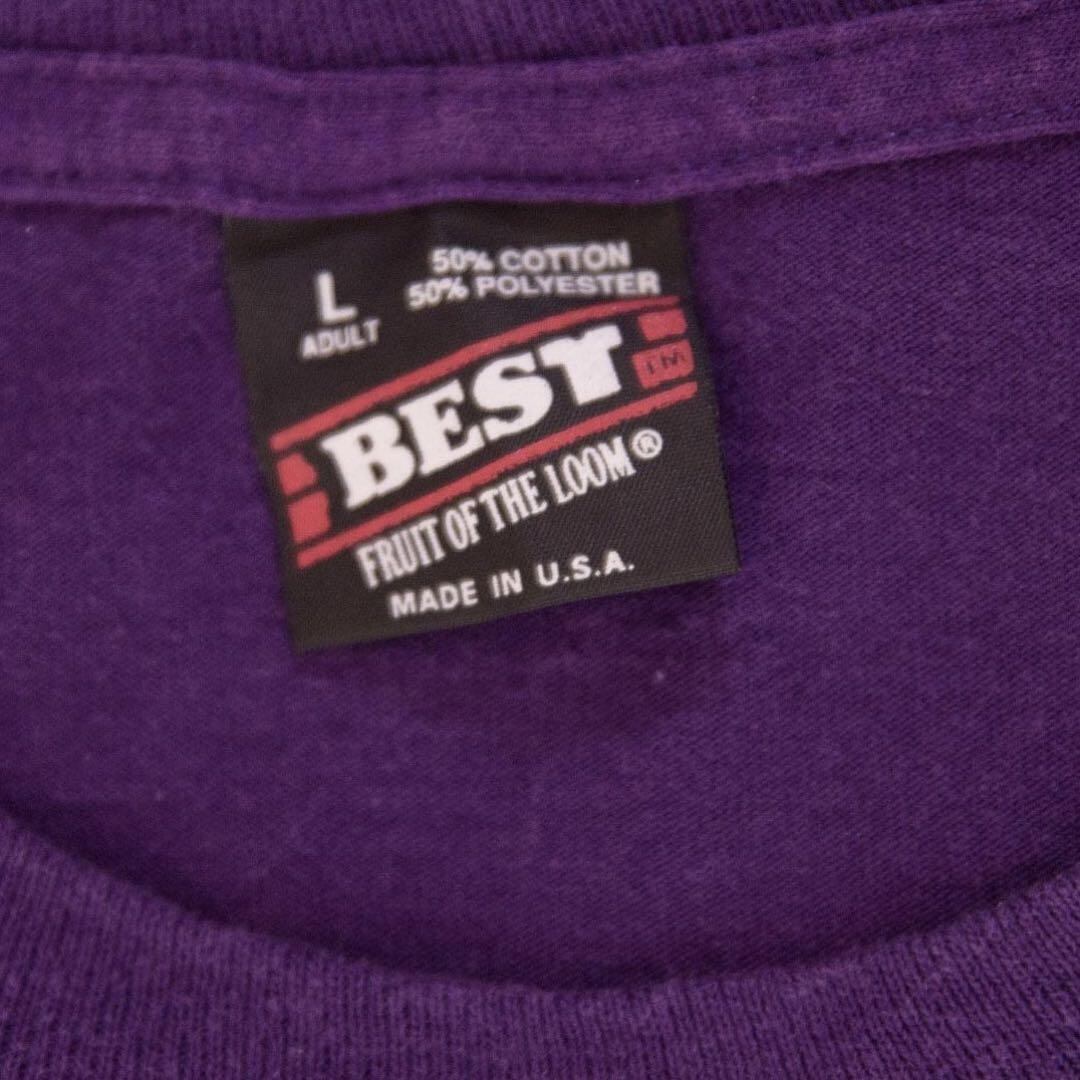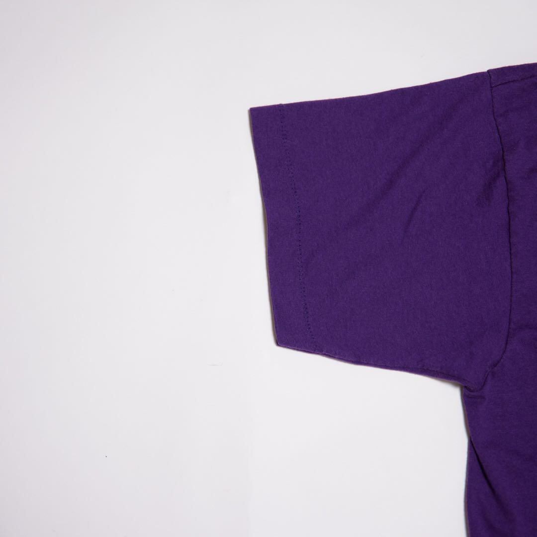 90s Fruit of the loom キャラクター ワンポイント 刺繍 Tシャツ USA製 シングルステッチ ミッキー mickey mouse ボックスシルエット 90年代 フルーツオブザルーム 紫 古着 vintage 【L】