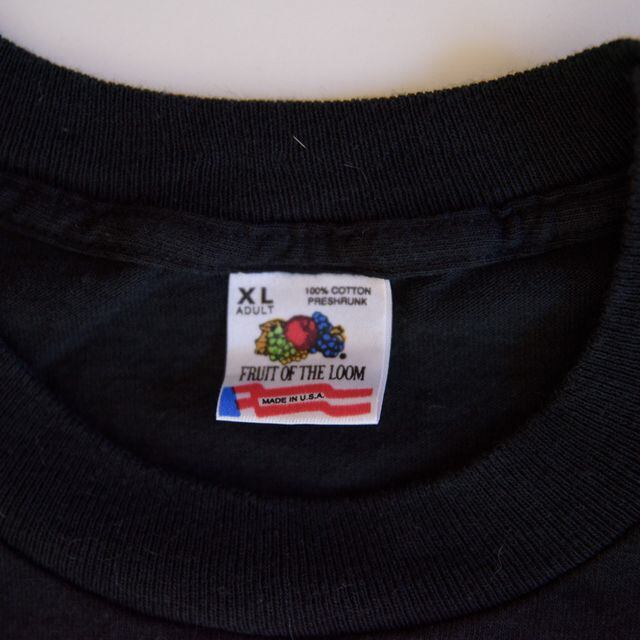 90s Fruit of the loom ビンテージ プリント Tシャツ USA製 シングルステッチ イベントT ロゴ back 2 school 学園祭 スカ 2トーン スカ ミュージックT ボックスシルエット 黒 フェード 古着 vintage 【XL】