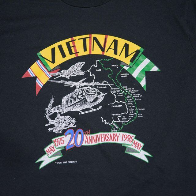 90s ビンテージ プリント Tシャツ シングルステッチ ベトナム戦争 終戦 記念 20周年 95年 ミリタリー POW/MIA (捕虜/行方不明兵士) ボックスシルエット黒 古着 vintage 【L】